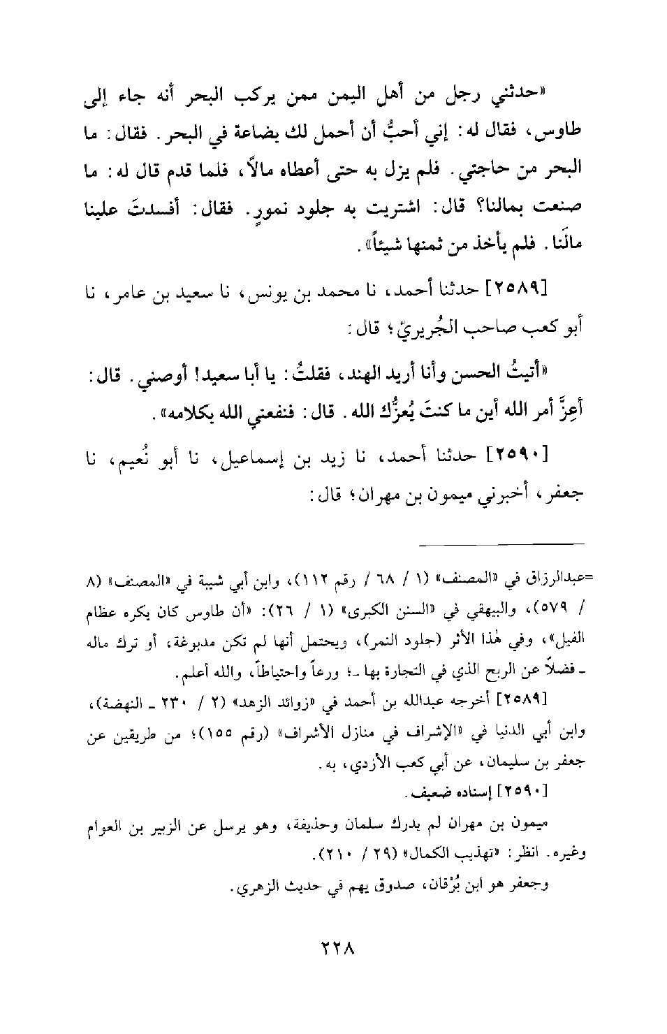 2589 - حَدَّثَنَا أَحْمَدُ، نا مُحَمَّدُ بْنُ يُونُسَ، نا سَعِيدُ بْنُ عَامِرٍ، نا أَبُو كَعْبٍ صَاحِبُ الْجُرَيْرِيِّ؛ قَالَ: أَتَيْتُ الْحَسَنَ وَأَنَا أُرِيدُ الْهِنْدَ، فَقُلْتُ: يَا أَبَا سَعِيدٍ! أَوْصِنِي. قَالَ: أَعِزَّ أَمْرَ اللهِ أَيْنَ مَا كُنْتَ يُعِزَّكَ اللهُ. قَالَ: فَنَفَعَنِي اللهُ بِكَلامِهِ.