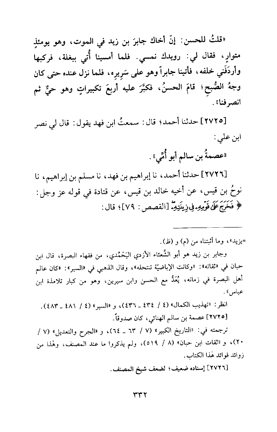 2726 - حَدَّثَنَا أَحْمَدُ، نا إِبْرَاهِيمُ بْنُ فَهْدٍ، نا مُسْلِمُ بْنُ إِبْرَاهِيمَ، نا نُوحُ بْنُ قَيْسٍ، عَنْ أَخِيهِ خَالِدِ بْنِ قَيْسٍ، عَنْ قَتَادَةَ فِي قَوْلِهِ عَزَّ وَجَلَّ: {فَخَرَجَ عَلَى قَوْمِهِ فِي زينته} [القصص: 79] ؛ قَالَ: -[333]- خَرَجَ عَلَى أَلْفِ بَغْلَةٍ شَهْبَاءَ عَلَيْهَا مَيَاثِرُ الأَرْجُوَانِ