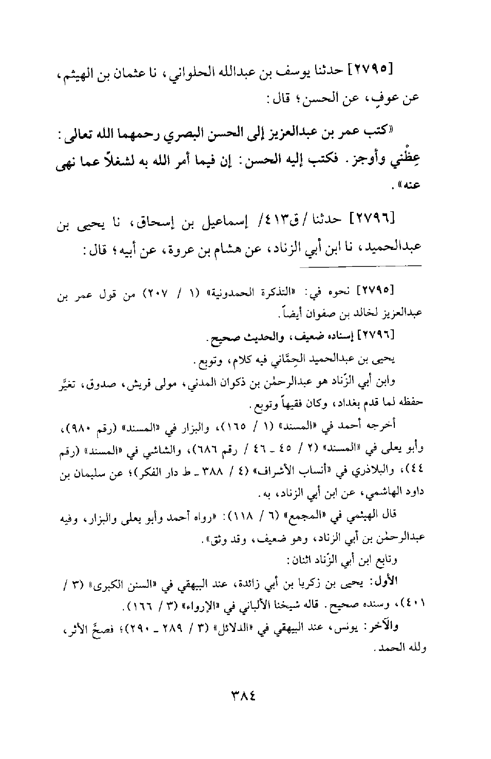 2795 - حَدَّثَنَا يُوسُفُ بْنُ عَبْدِ اللهِ الْحُلْوَانِيُّ، نا عُثْمَانُ بْنُ الْهَيْثَمِ، عنِ عَوْفٍ، عَنِ الْحَسَنِ؛ قَالَ: كَتَبَ عُمَرُ بْنُ عَبْدِ الْعَزِيزِ إِلَى الْحَسَنِ الْبَصْرِيِّ رَحِمَهُمَا اللهُ تَعَالَى: عِظْنِي وَأَوْجِزْ. فَكَتَبَ إِلَيْهِ الْحَسَنُ: إِنَّ فِيمَا أَمَرَ اللهُ بِهِ لَشُغْلا عَمَّا نَهَى عَنْهُ.
