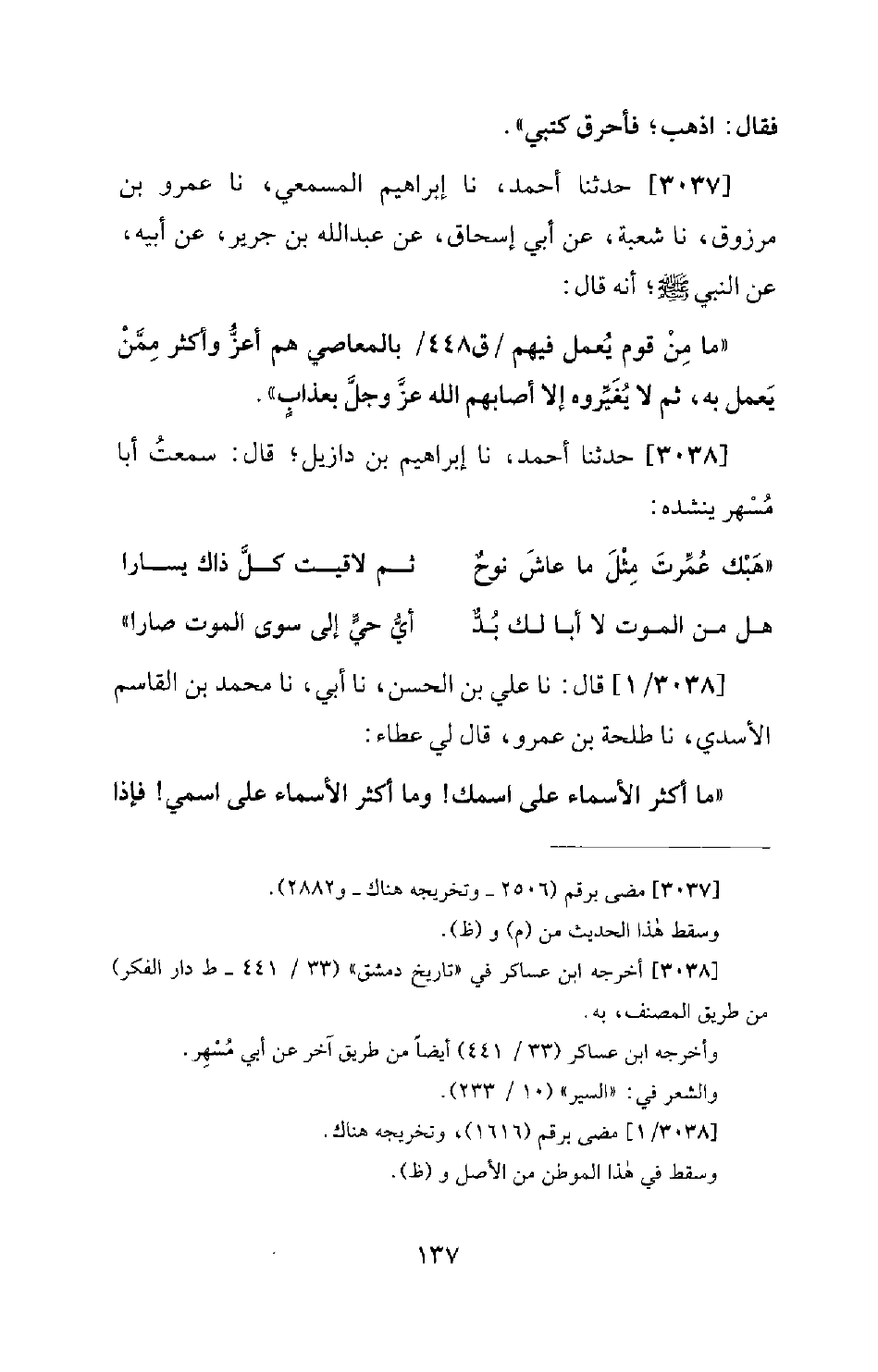 3038 - حَدَّثَنَا أَحْمَدُ، نا إِبْرَاهِيمُ بْنُ دَازِيلَ؛ قَالَ: سَمِعْتُ أَبَا مُسْهِرٍ يُنْشِدُهُ: