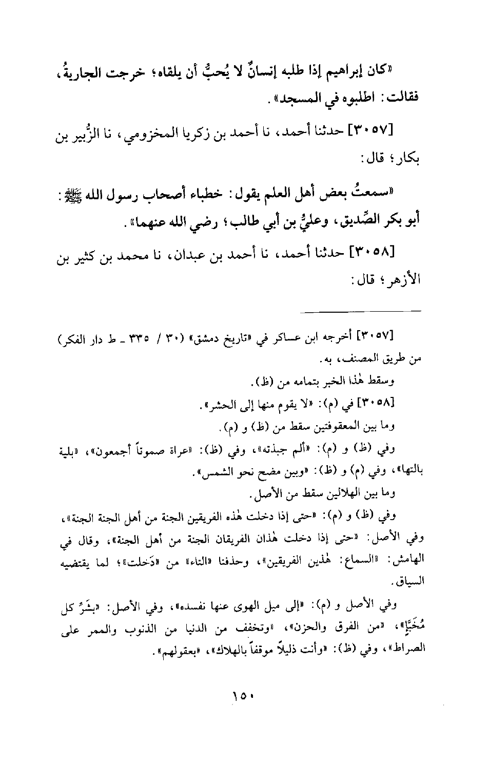 3057 - حَدَّثَنَا أَحْمَدُ، نا أَحْمَدُ بْنُ زَكَرِيَّا الْمَخْزُومِيُّ، نا الزُّبَيْرُ بْنُ بَكَّارٍ؛ قَالَ: سَمِعْتُ بَعْضَ أَهْلِ الْعِلْمِ يَقُولُ: خُطَبَاءُ أَصْحَابِ رَسُولِ اللهِ صَلَّى اللَّهُ عَلَيْهِ وَسَلَّمَ: أَبُو بَكْرٍ الصِّدِّيقُ، وَعَلِيُّ بْنُ أَبِي طَالِبٍ؛ رَضِيَ اللهُ عَنْهُمَا.