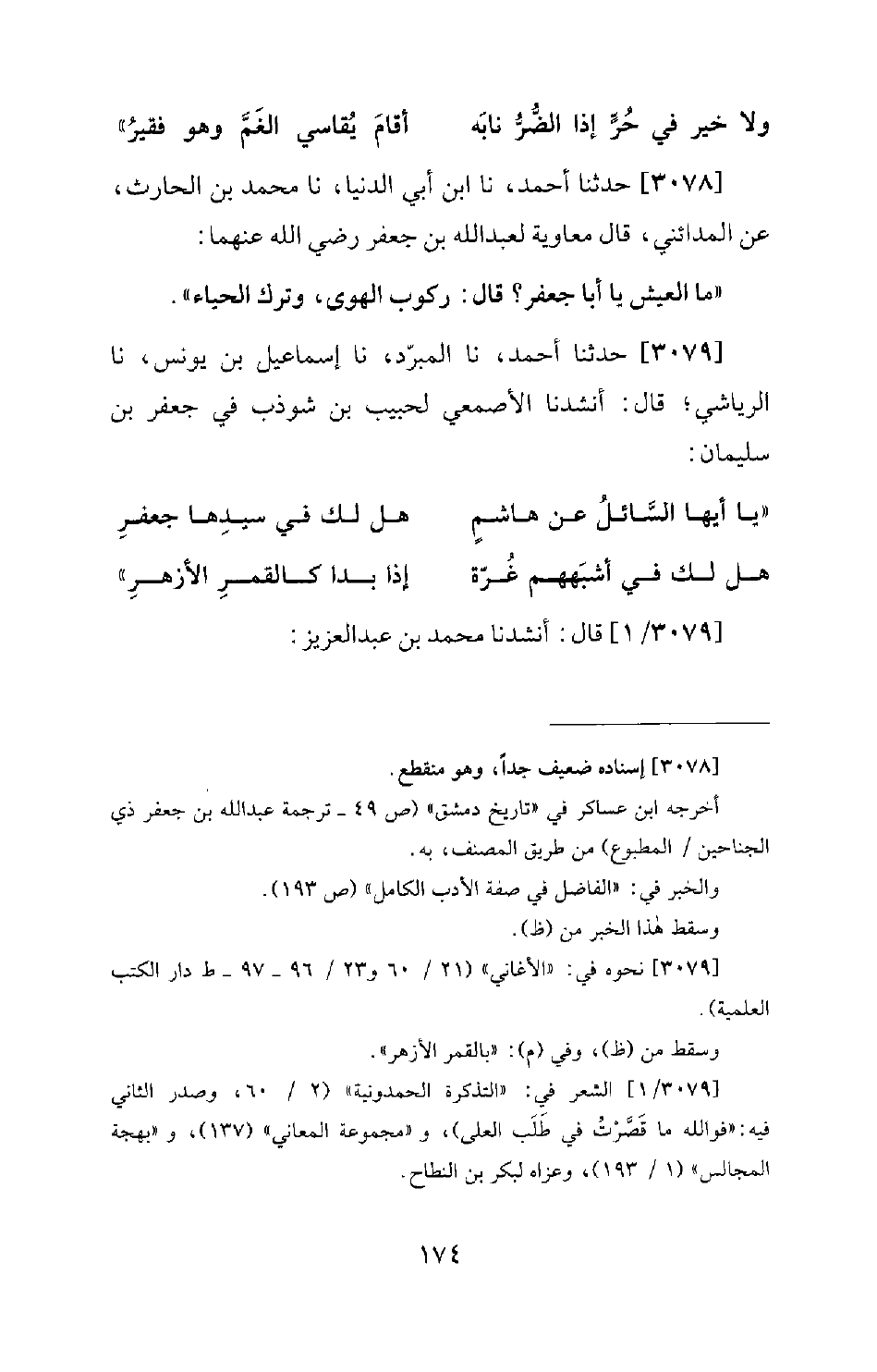 3079 - حَدَّثَنَا أَحْمَدُ، نا الْمُبَرِّدُ، نا إِسْمَاعِيلُ بْنُ يُونُسَ، نا الرِّيَاشِيُّ؛ قَالَ: أَنْشَدَنَا الأَصْمَعِيُّ لِحَبِيبِ بْنِ شَوْذَبٍ فِي جَعْفَرِ بن سليمان: