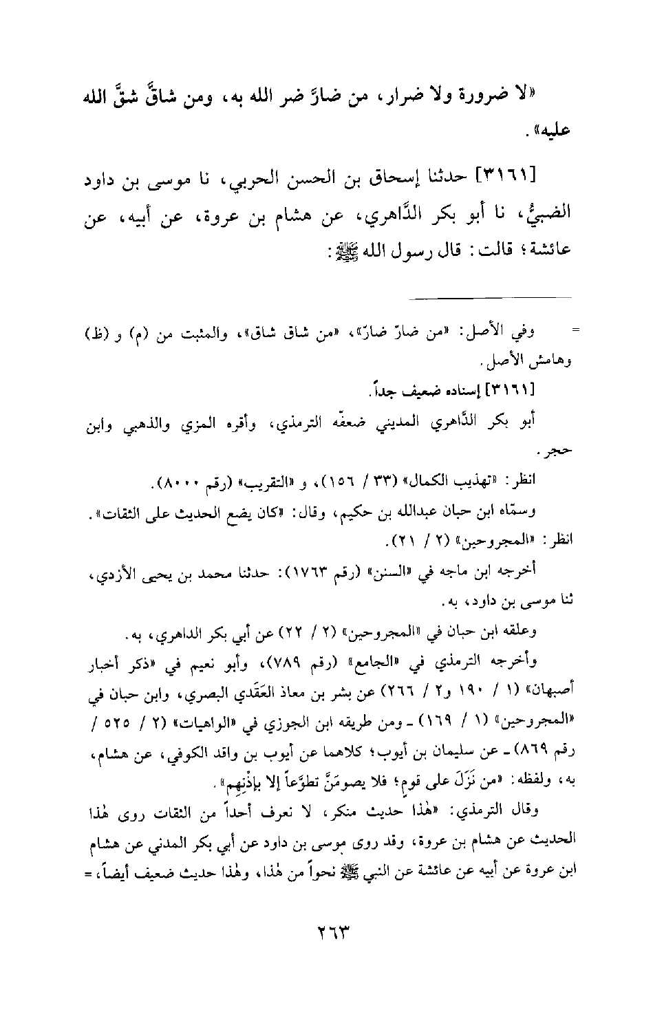 3161 - حَدَّثَنَا إِسْحَاقُ بْنُ الْحَسَنِ الْحَرْبِيُّ، نا مُوسَى بْنُ دَاوُدَ الضَّبِّيُّ، نا أَبُو بَكْرٍ الدَّاهِرِيُّ، عَنْ هِشَامِ بْنِ عُرْوَةَ، عَنْ أَبِيهِ، عَنْ عَائِشَةَ؛ قَالَتْ: قَالَ رَسُولُ اللهِ -[264]- صَلَّى اللَّهُ عَلَيْهِ وَسَلَّمَ: «إِذَا نَزَلَ الرَّجُلُ عَلَى قَوْمٍ؛ فَلا يَصُمْ إِلا بِإِذْنِهِمْ»