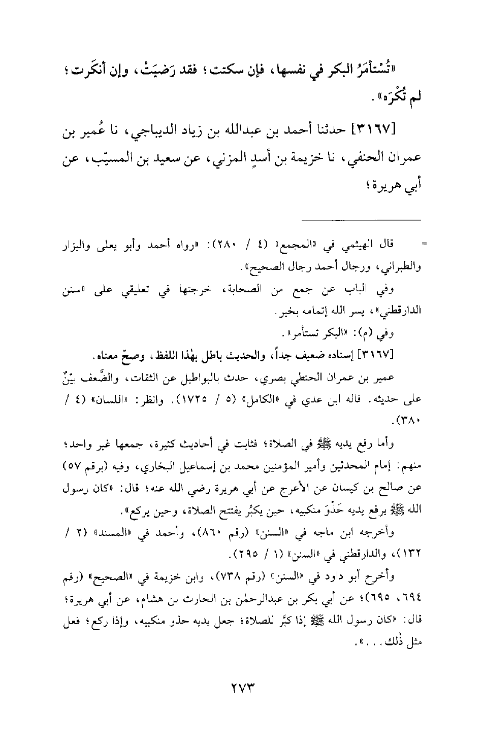 3167 - حَدَّثَنَا أَحْمَدُ بْنُ عَبْدِ اللهِ بْنِ زِيَادٍ الدِّيبَاجِيُّ، نا عُمَيْرُ بْنُ عِمْرَانَ الْحَنَفِيُّ، نا خُزَيْمَةُ بْنُ أَسَدٍ الْمُزَنِيُّ، عَنْ سَعِيدِ بْنِ الْمُسَيِّبِ، عَنْ أَبِي هُرَيْرَةَ: -[274]- أَنَّ رَسُولَ اللهِ صَلَّى اللَّهُ عَلَيْهِ وَسَلَّمَ كَانَ إِذَا كَبَّرَ؛ يَرْفَعُ يَدَيْهِ فِي الصَّلاةِ حَتَّى يُرَى أَطْرَافُ أَنَامِلِهِ مِنْ أَطْرَافِ مَنْكِبَيْهِ