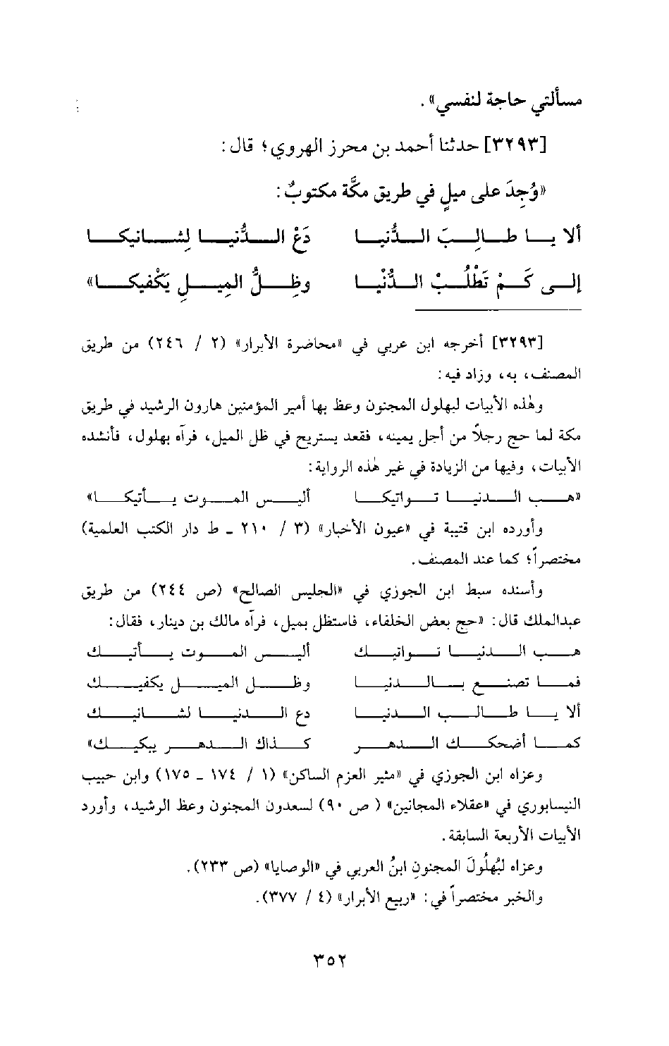 3293 - حَدَّثَنَا أَحْمَدُ بْنُ مُحْرِزٍ الْهَرَوِيُّ؛ قَالَ: وُجِدَ عَلَى مِيلٍ فِي طَرِيقِ مَكَّةَ مَكْتُوبٌ: