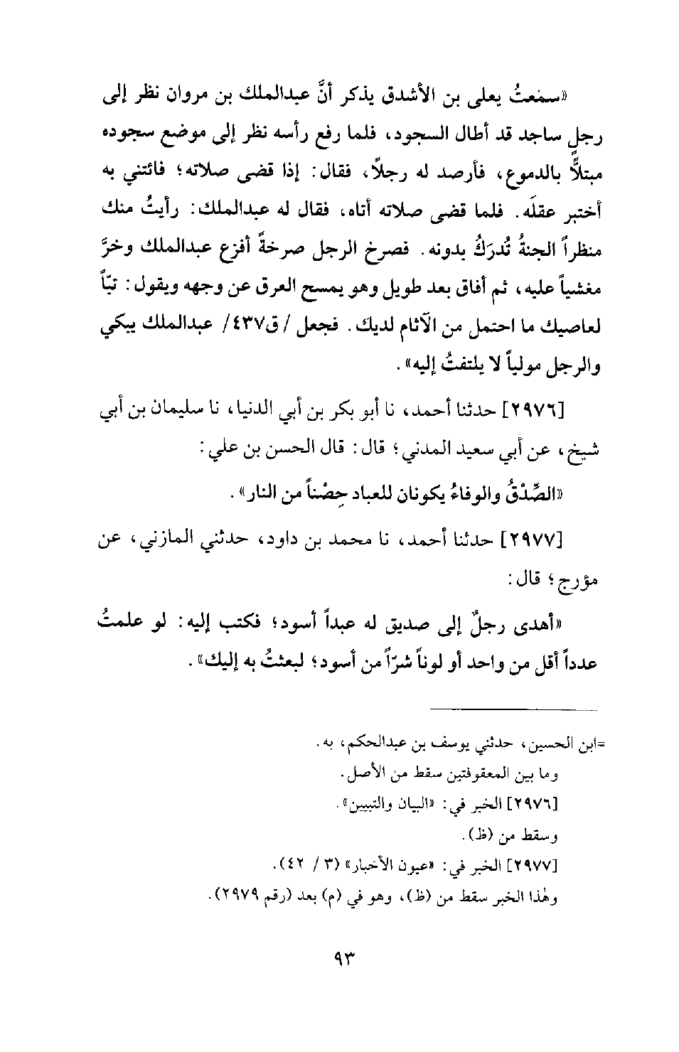 2976 - حَدَّثَنَا أَحْمَدُ، نا أَبُو بَكْرِ بْنُ أَبِي الدُّنْيَا، نا سُلَيْمَانُ بْنُ أَبِي شَيْخٍ، عن أبي سعيد الْمَدَنِيِّ؛ قَالَ: قَالَ الْحَسَنُ بْنُ عَلِيٍّ: الصِّدْقُ وَالْوَفَاءُ يَكُونَانِ لِلْعِبَادِ حِصْنًا مِنَ النَّارِ.