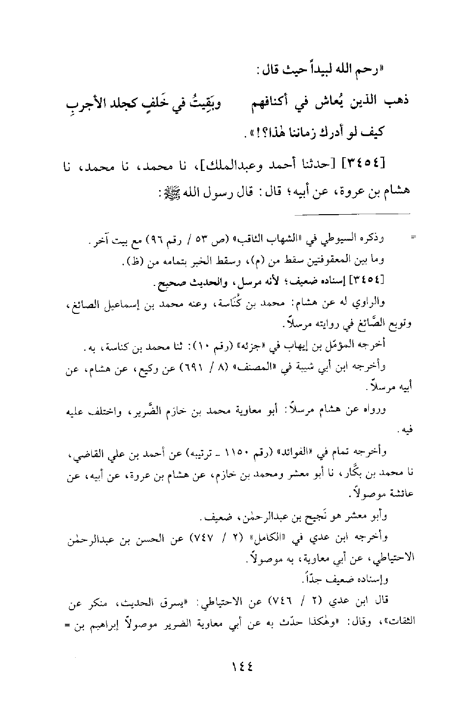 3454 - حَدَّثَنَا أَحْمَدُ وَعَبْدُ الْمَلِكِ، نا مُحَمَّدٌ، نا مُحَمَّدٌ، نا هِشَامُ بْنُ عُرْوَةَ، عَنْ أَبِيهِ؛ قَالَ: قَالَ رَسُولُ اللهِ -[145]- صَلَّى اللَّهُ عَلَيْهِ وَسَلَّمَ: «إِنَّ مِنَ الشِّعْرِ حِكْمَةً»