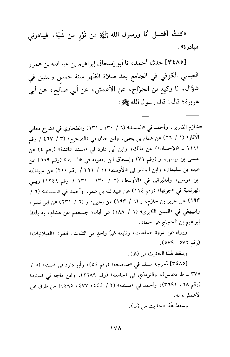 3485 - حَدَّثَنَا أَحْمَدُ، نا أَبُو إِسْحَاقَ إِبْرَاهِيمُ بْنُ عَبْدِ اللهِ بْنِ عَمْرٍو الْعَبْسِيُّ الْكُوفِيُّ فِي الْجَامِعِ بَعْدَ صَلاةِ الظُّهْرِ سَنَةَ خَمْسٍ وَسِتِّينَ فِي شَوَّالٍ، نا وَكِيعُ بْنُ الْجَرَّاحِ، عَنِ الأَعْمَشِ، عَنْ أَبِي صَالِحٍ، عَنْ أَبِي هُرَيْرَةَ؛ قَالَ: قَالَ رَسُولُ اللهِ -[179]- صَلَّى اللَّهُ عَلَيْهِ وَسَلَّمَ: «لا تَدْخُلُوا الْجَنَّةَ حَتَّى تُؤْمِنُوا، وَلا تُؤْمِنُوا حَتَّى تَحَابُّوا، أَلا أَدُلُّكُمْ عَلَى شَيْءٍ إِذَا فَعَلْتُمُوهُ تَحَابَبْتُمْ، أَفْشُوا السَّلامَ بَيْنَكُمْ»