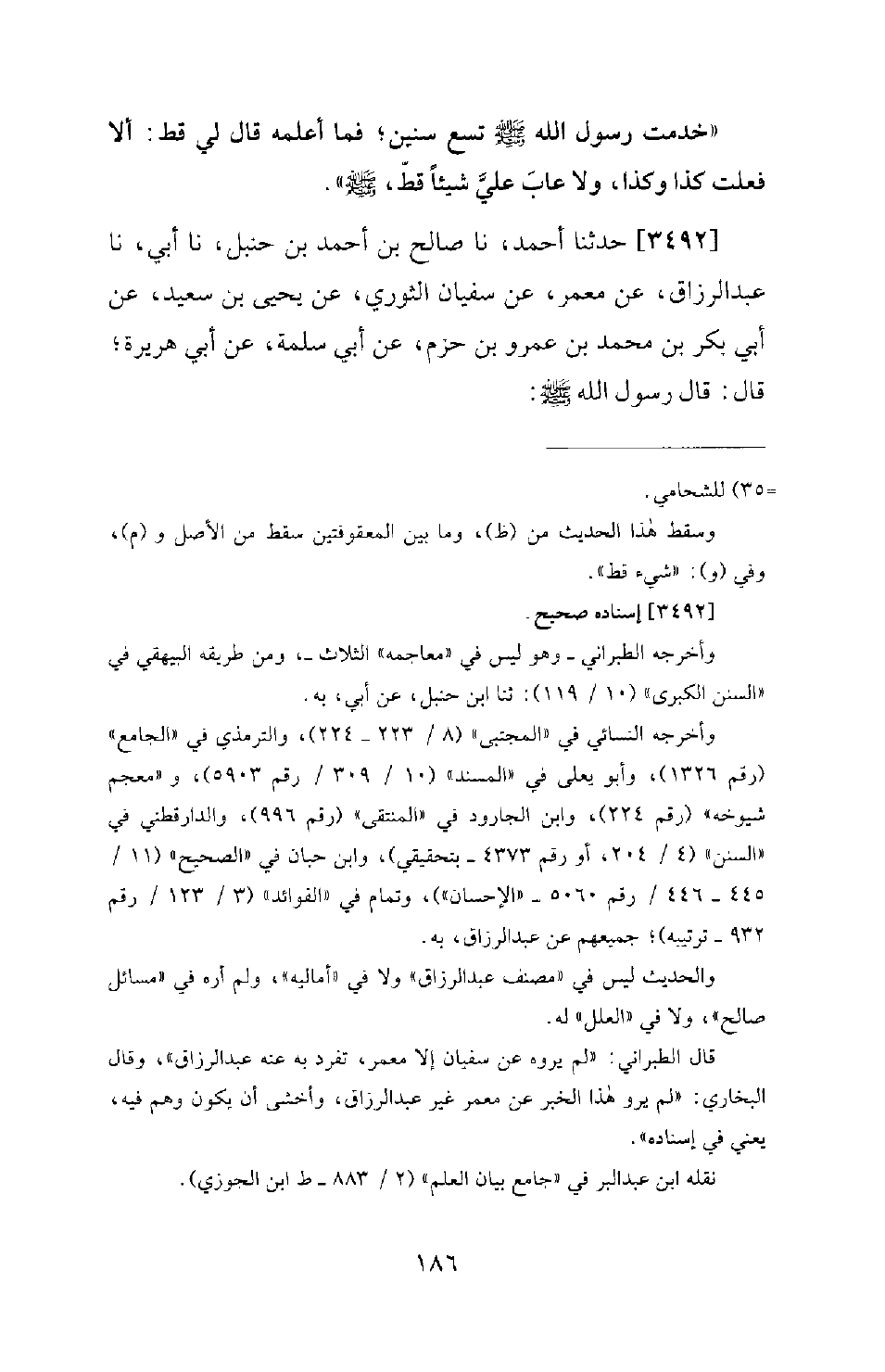 3492 - حَدَّثَنَا أَحْمَدُ، نا صَالِحُ بْنُ أَحْمَدَ بْنِ حَنْبَلٍ، نا أَبِي، نا عَبْدُ الرَّزَّاقِ، عَنْ مَعْمَرٍ، عَنْ سُفْيَانَ الثَّوْرِيِّ، عَنْ يَحْيَى بْنِ سَعِيدٍ، عَنْ أَبِي بَكْرِ بْنِ مُحَمَّدِ بْنِ عَمْرِو بْنِ حَزْمٍ، عَنْ أَبِي سَلَمَةَ، عَنْ أَبِي هُرَيْرَةَ؛ قَالَ: قَالَ رَسُولُ اللهِ -[187]- صَلَّى اللَّهُ عَلَيْهِ وَسَلَّمَ: «إِذَا حَكَمَ الْحَاكِمُ فَاجْتَهَدَ فَأَصَابَ؛ فَلَهُ أَجْرَانِ، وَإِذَا اجْتَهَدَ فَأَخْطَأَ؛ فَلَهُ أَجْرٌ»