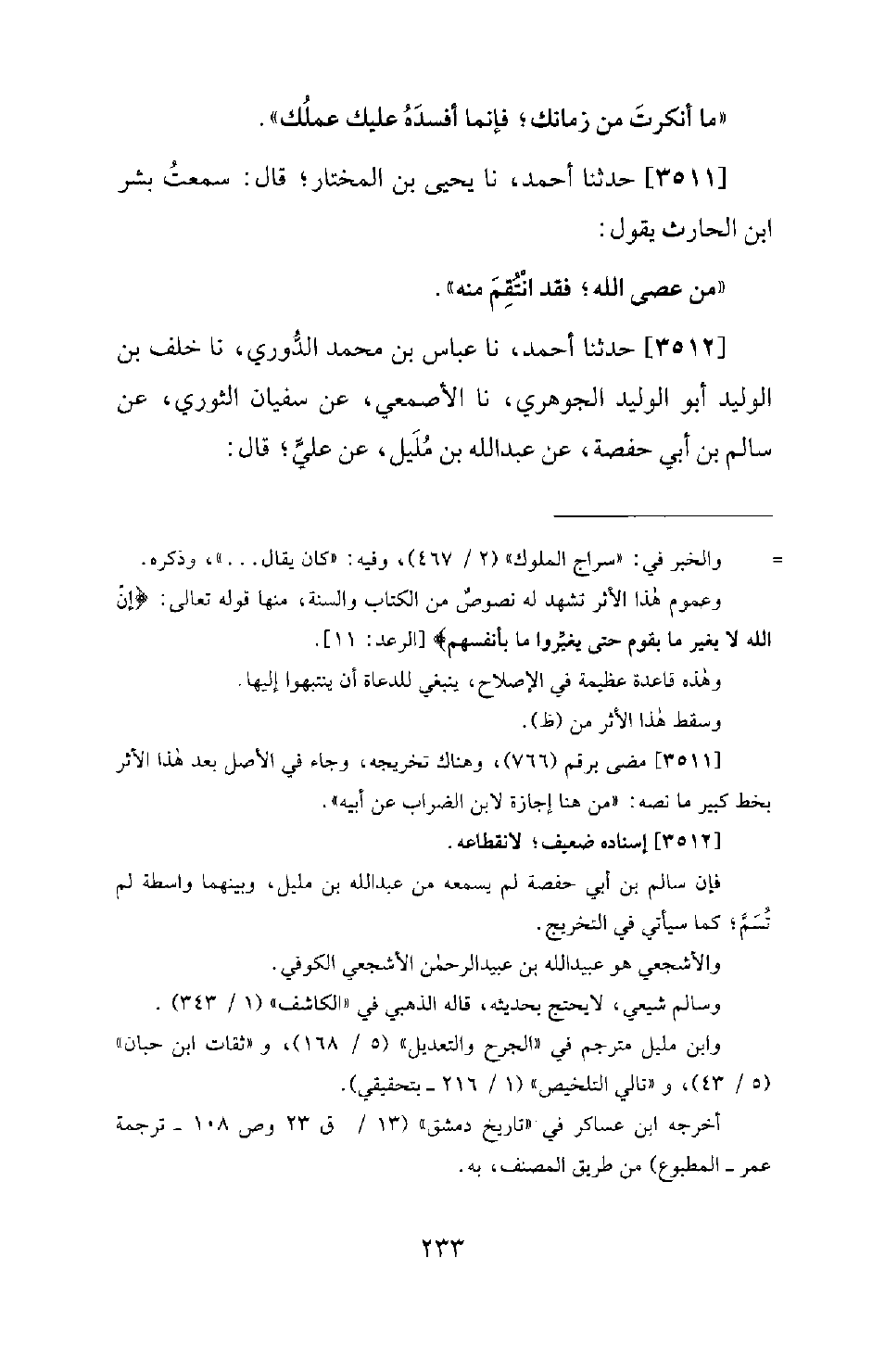 3511 - حَدَّثَنَا أَحْمَدُ، نا يَحْيَى بْنُ الْمُخْتَارِ؛ قَالَ: سَمِعْتُ بِشْرَ بْنَ الْحَارِثِ يَقُولُ: مَنْ عَصَى اللهَ؛ فَقَدِ انْتُقِمَ مِنْهُ.
