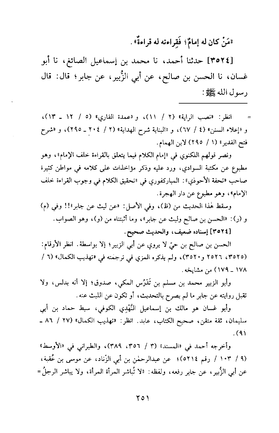 3524 - حَدَّثَنَا أَحْمَدُ، نا مُحَمَّدُ بْنُ إِسْمَاعِيلَ الصَّائِغُ، نا أَبُو غَسَّانَ، نا الْحَسَنُ بْنُ صَالِحٍ، عَنِ أَبِي الزُّبَيْرِ، عَنْ جَابِرٍ؛ قَالَ: قَالَ رَسُولُ اللهِ -[252]- صَلَّى اللَّهُ عَلَيْهِ وَسَلَّمَ: «لا تُبَاشِرُ الْمَرْأَةُ الْمَرْأَةَ تَنْعِتُهَا لِزَوْجِهَا كَأَنَّهُ يَنْظُرُ إِلَيْهَا»