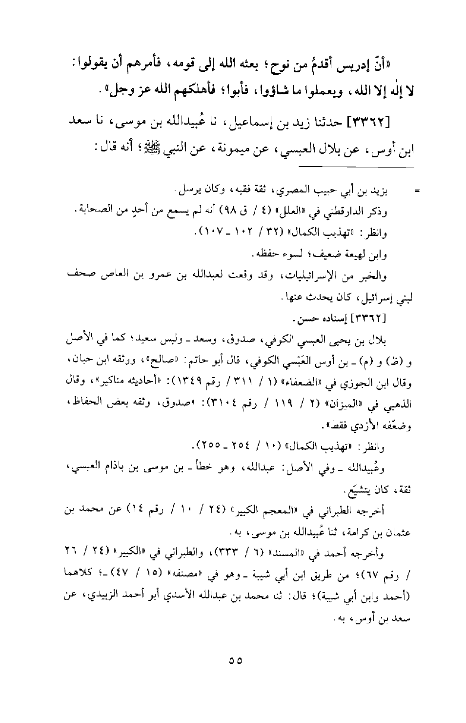 3362 - حَدَّثَنَا زَيْدُ بْنُ إِسْمَاعِيلَ، نا عُبَيْدُ اللهُ بْنُ مُوسَى، نا سَعْدُ بْنُ أَوْسٍ، عَنْ بِلالٍ الْعَبْسِيِّ، عَنْ مَيْمُونَةَ، عَنِ النَّبِيِّ صَلَّى اللَّهُ عَلَيْهِ وَسَلَّمَ؛ أَنَّهُ قَالَ -[56]-: «كَيْفَ أَنْتُمْ إِذَا مَرَجَ الدِّينُ، وَظَهَرَتِ الرَّغْبَةُ، وَاخْتَلَفَ الإِخْوَانُ، وَيُحْرَقُ الْبَلَدُ الْعَتِيقُ؟ !»