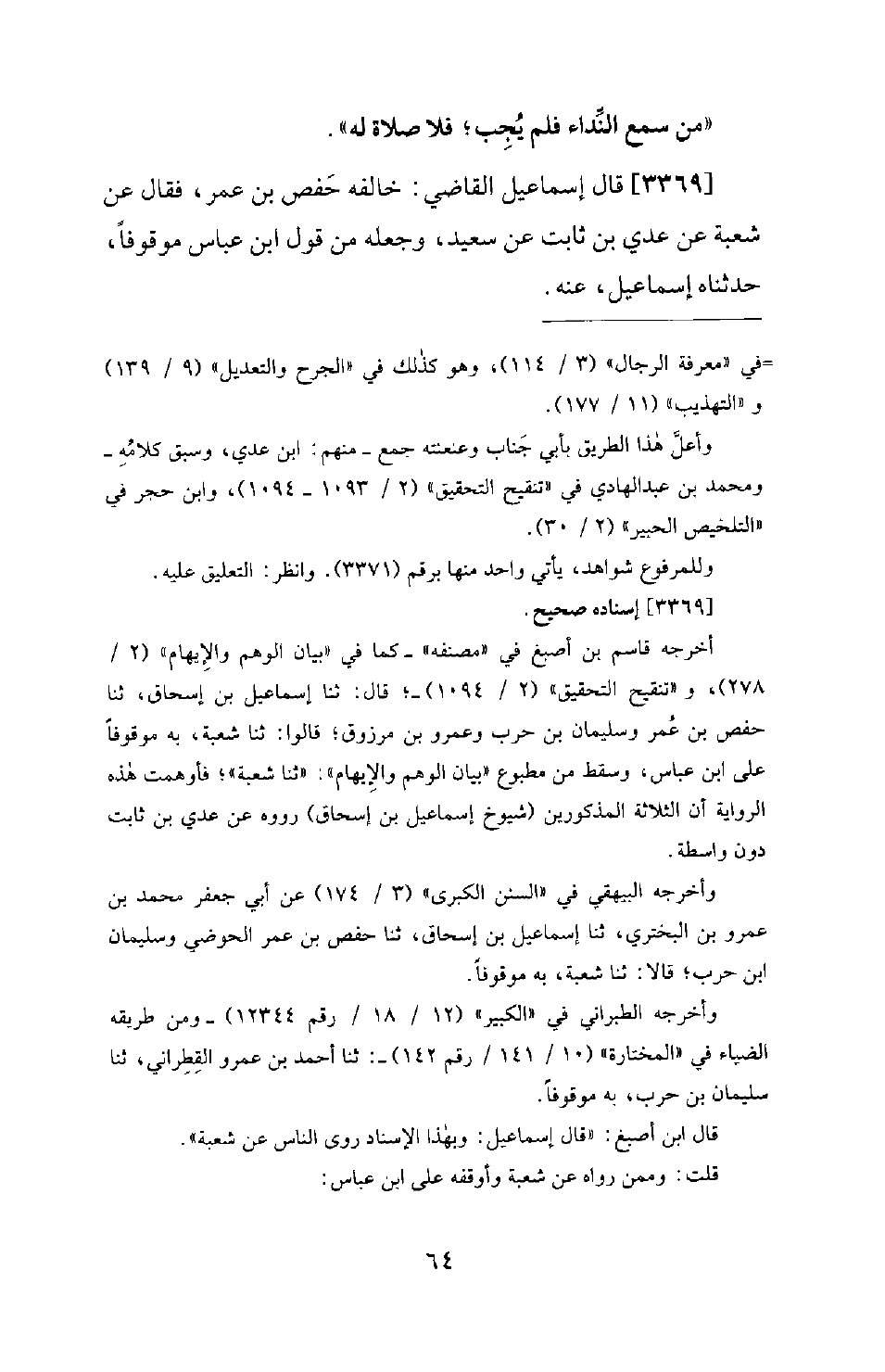 3369 - قَالَ إِسْمَاعِيلُ الْقَاضِي: خَالَفَهُ حَفْصُ بْنُ عُمَرَ، فَقَالَ عَنْ شُعْبَةَ عَنْ عَدِيِّ بْنِ ثَابِتٍ عَنْ سَعِيدٍ، وَجَعَلَهُ مِنْ قَوْلِ ابْنِ عَبَّاسٍ مَوْقُوفًا؛ حَدَّثَنَاهُ إِسْمَاعِيلُ، عَنْهُ.