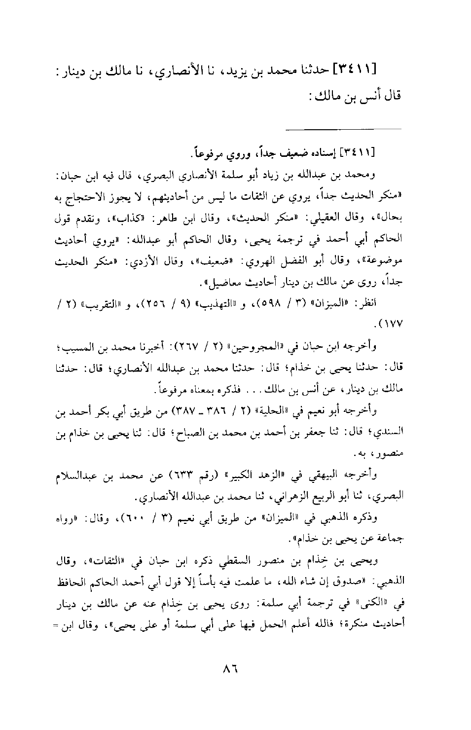 3411 - حَدَّثَنَا مُحَمَّدُ بْنُ يَزِيدَ، نا الأَنْصَارِيُّ، نا مَالِكُ بْنُ دِينَارٍ، قَالَ أَنَسُ بْنُ مَالِكٍ: -[99]- إِنَّ اللهَ عَزَّ وَجَلَّ يَقُولُ: وَعِزَّتِي وَجُودِي وَارْتِفَاعِي فِي عُلُوِّ مَكَانِي؛ إِنِّي لأَسْتَحِي مِنْ عَبْدِي وَأَمَتِي يَشِيبَانِ فِي الإِسْلامِ ثُمَّ أُعَذِّبُهُمَا. قَالَ: فَيَبْكِي أَنَسٌ. فَقِيلَ: مَا يُبْكِيكَ؟ قَالَ: أَبْكِي لِعَبْدٍ يَسْتَحِي اللهُ مِنْهُ وَلا يَسْتَحِي مِنَ اللهِ عَزَّ وَجَلَّ.
