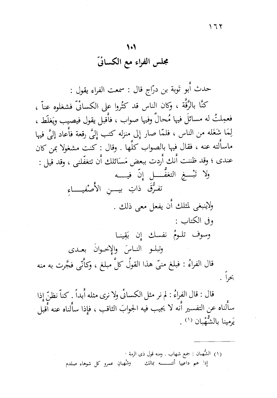 حدث أبو توبة بن دراج قال: سمعت الفراء يقول: