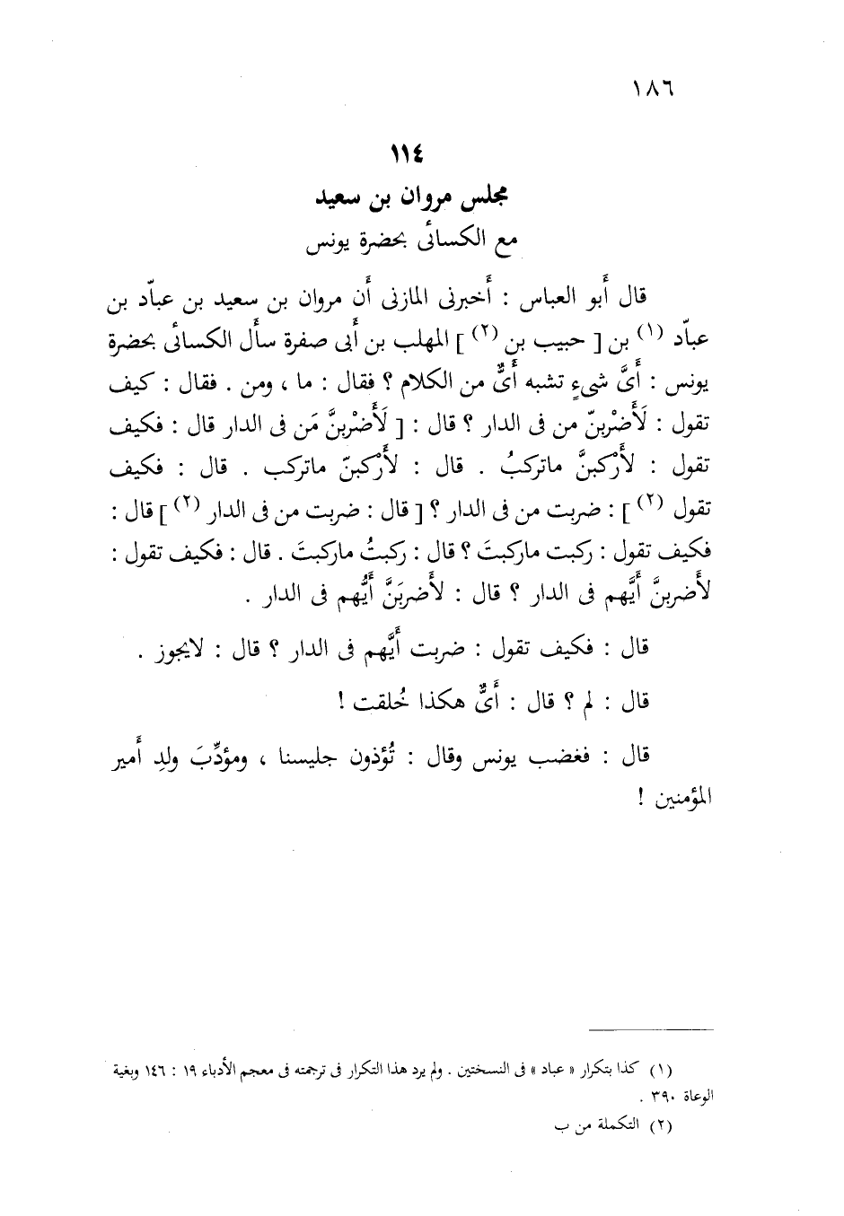 114- مجلس مروان بن سعيد مع الكسائي بحضرة يونس
