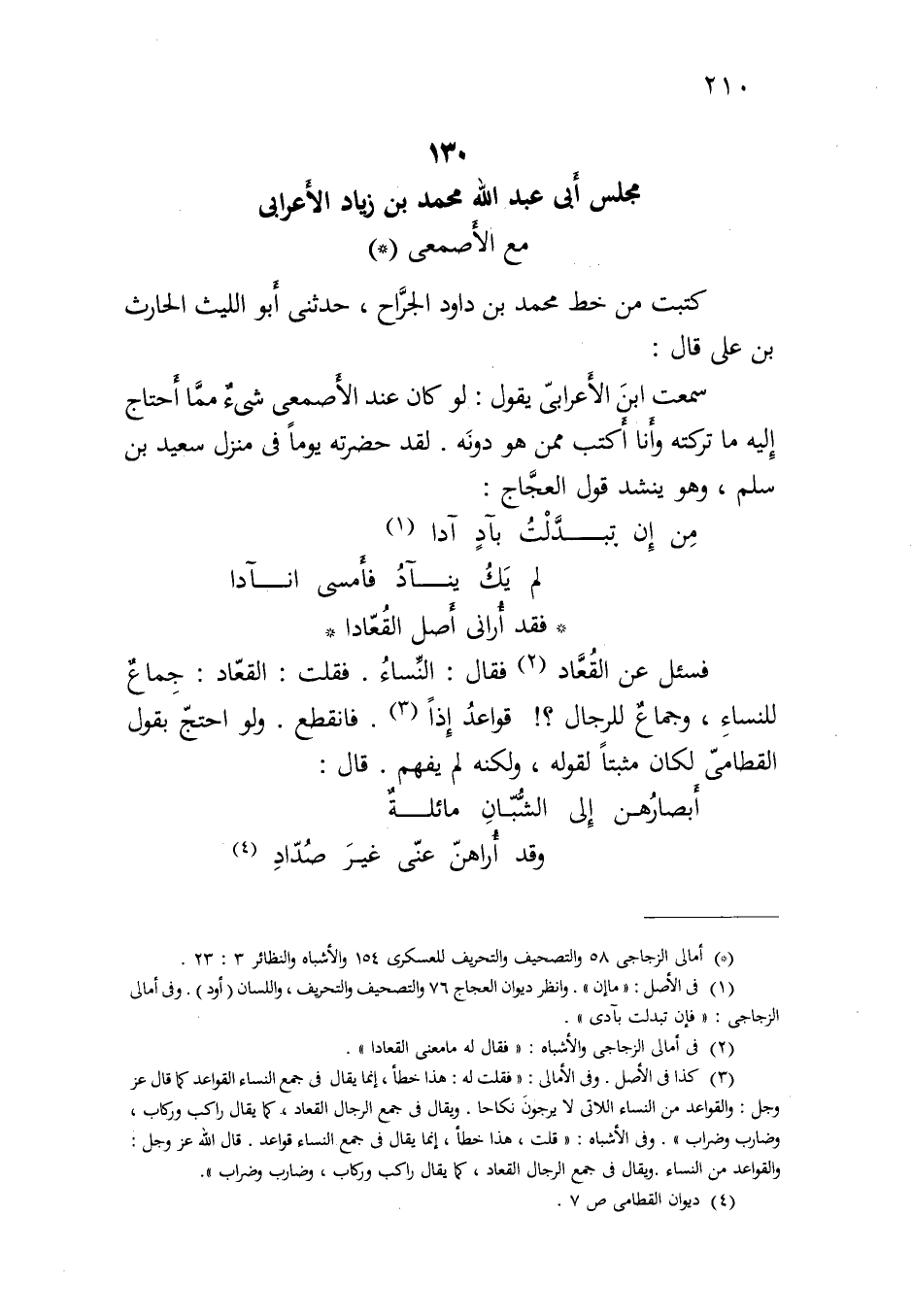 130- مجلس أبي عبد الله محمد بن زياد الأعرابي مع الأصمعي