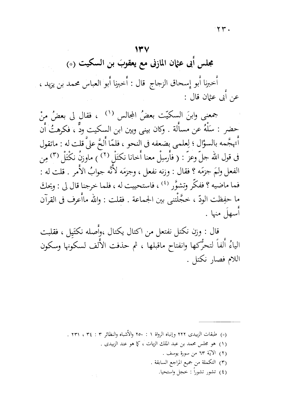 137- مجلس أبي عثمان المازني مع يعقوب بن السكيت