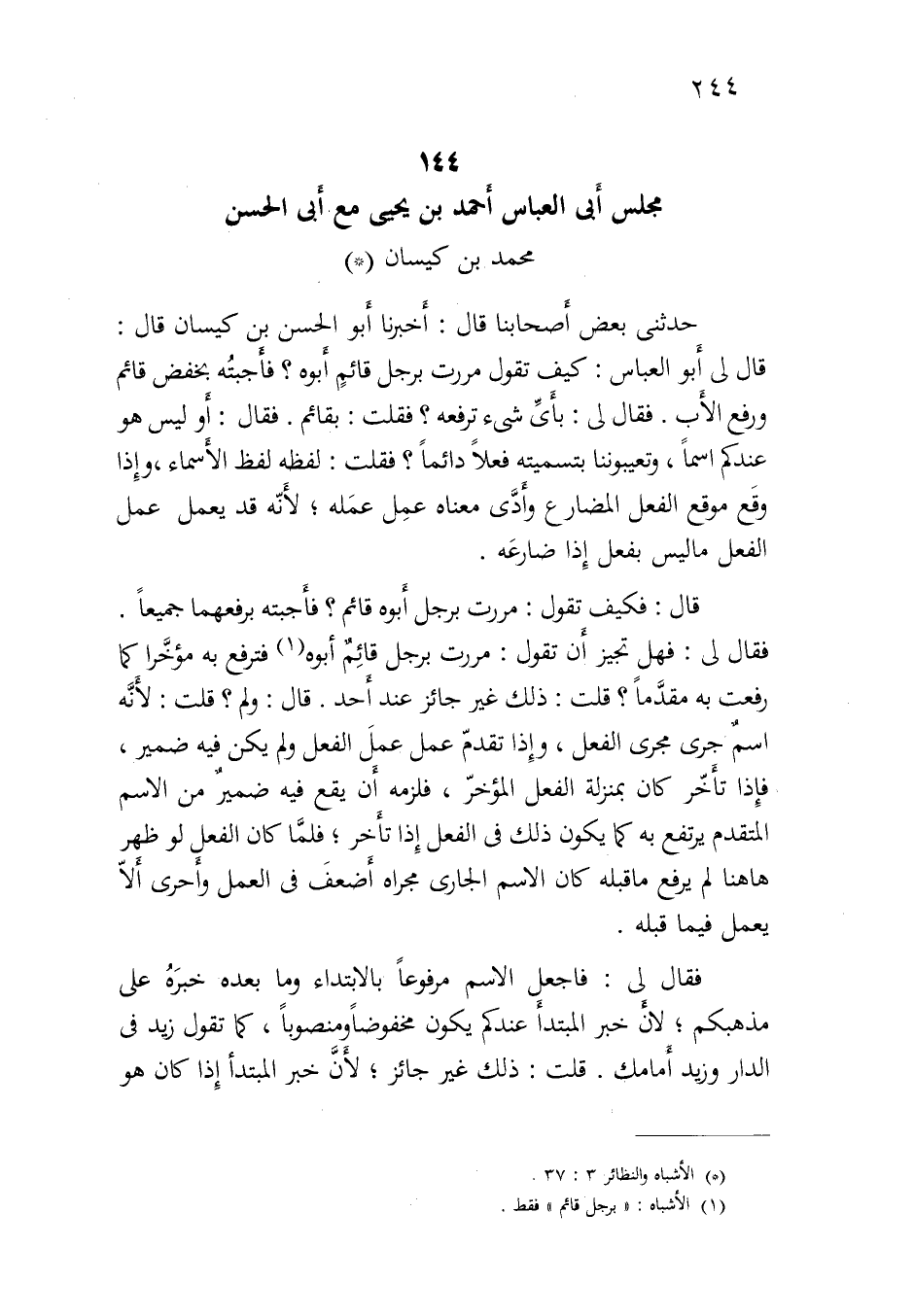 144- مجلس أبي العباس أحمد بن يحيى مع أبي الحسن محمد بن كيسان
