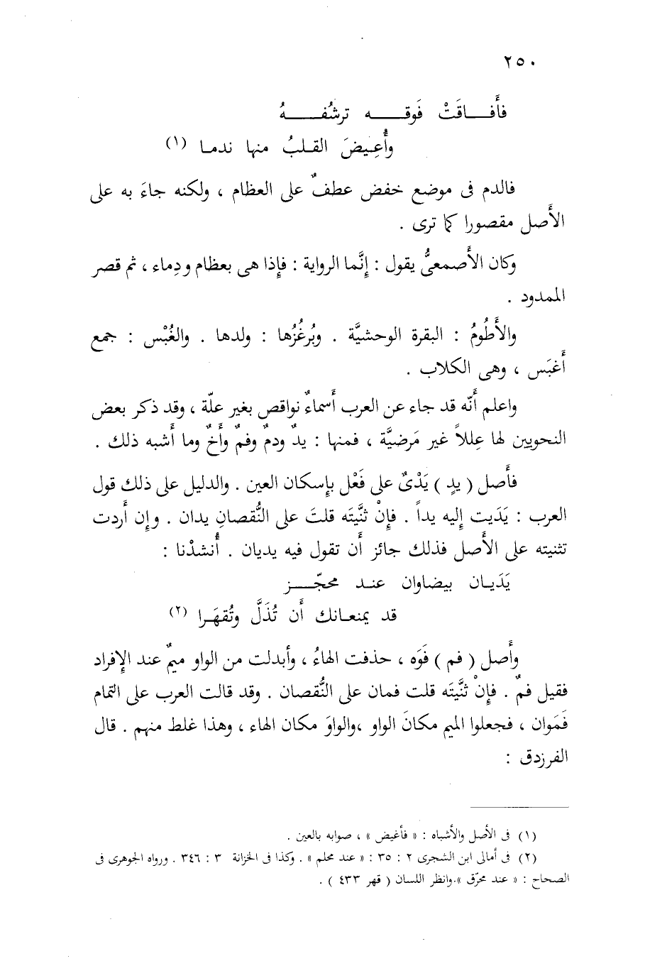 فأصل (يد) يديٌ على فعل بإسكان العين. والدليل على ذلك قول العرب: يديت إليه يدا. فإن ثنيته قلت على النقصان يدان. وإن أردت تثنيته على الأصل فذلك جائز أن تقول فيه يديان. أنشدنا:
