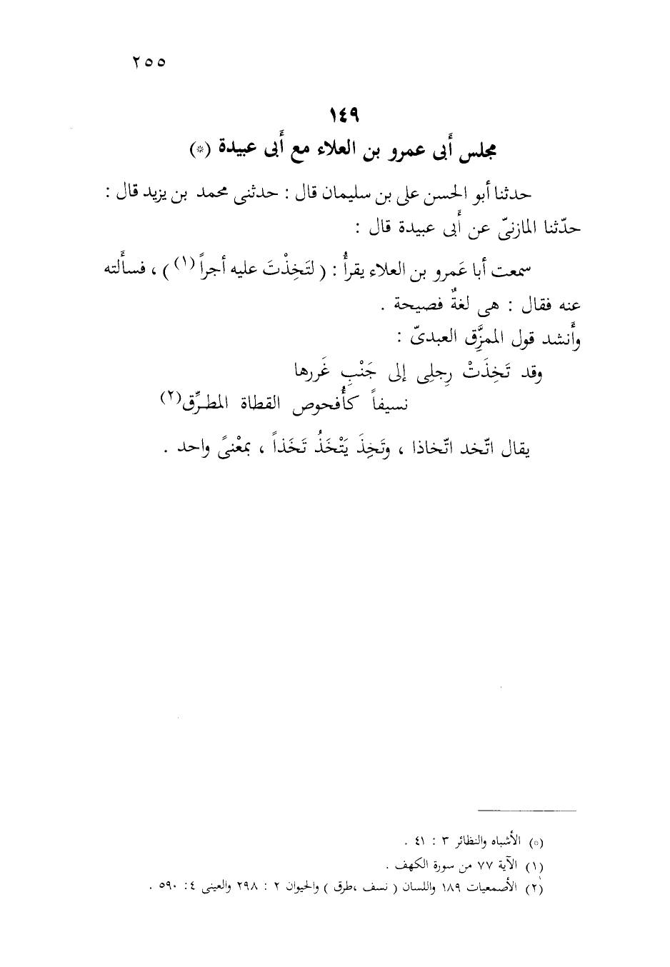 حدثنا أبو الحسن علي بن سليمان قال: حدثني محمد بن يزيد قال: حدثنا المازني عن أبي عبيدة قال: