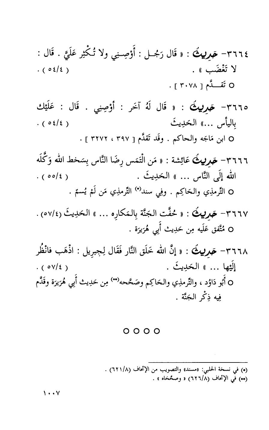 3667 حديث ( حفت الجنة بالمكاره . . . ) الحديث ( 4 / 57 ) + متفق عليه من حديث أبي هريرة +