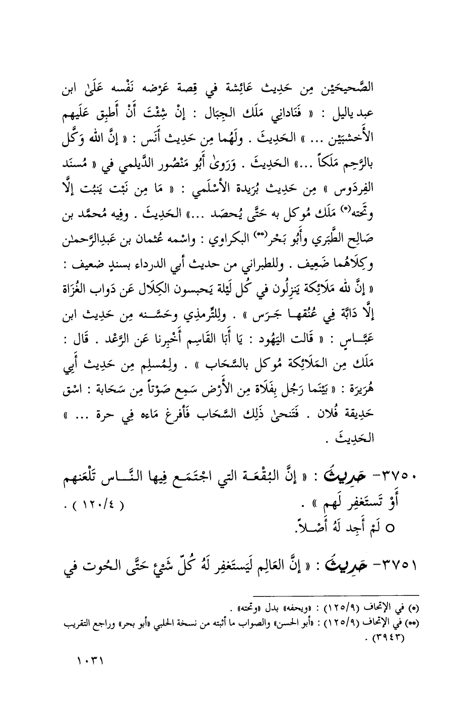 3750 حديث ( إن البقعة التي اجتمع فيها الناس تلعنهم أو تستغفر لهم ) ( 4 / 120 ) (1)