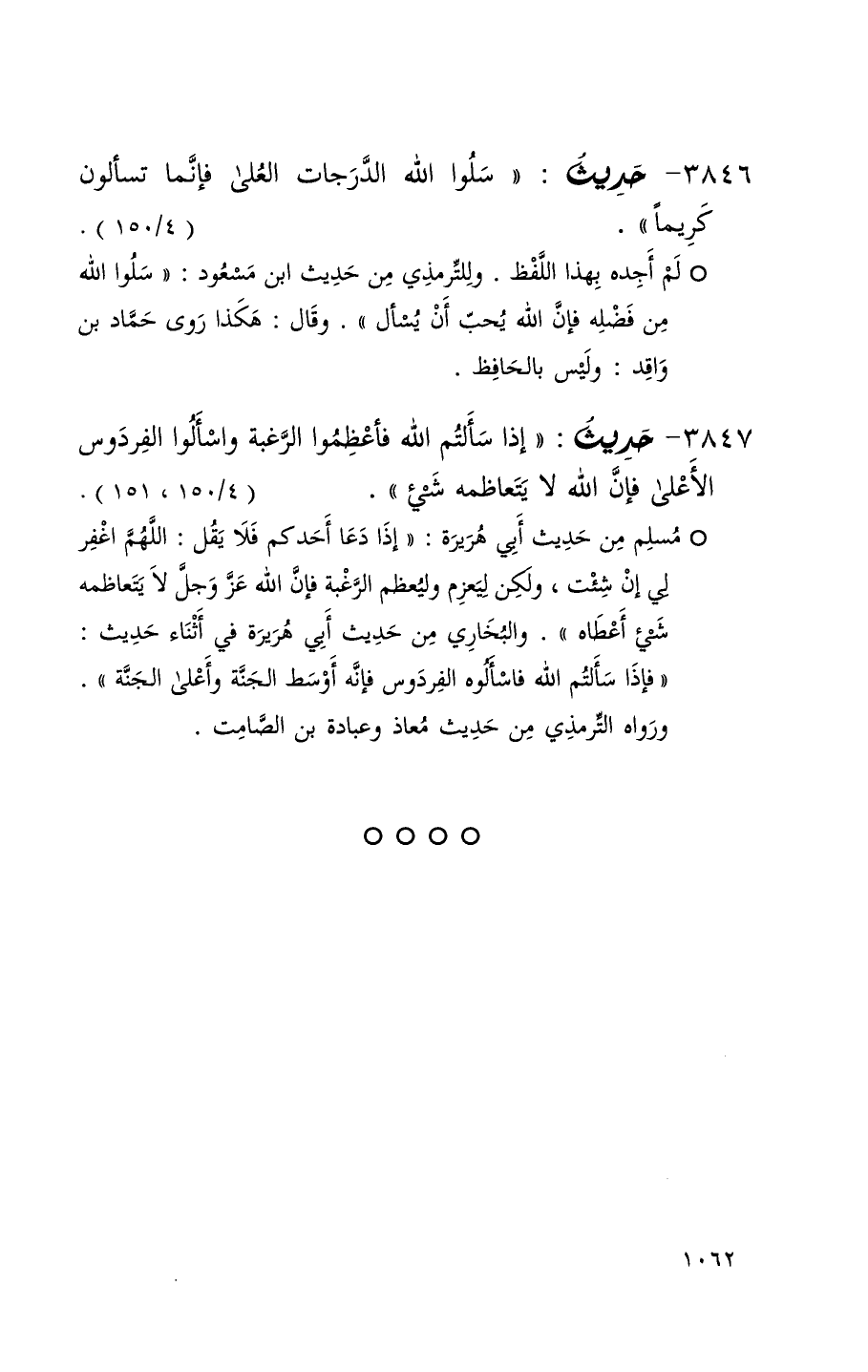 3846 حديث ( سلوا الله الدرجات العلى فإنما تسألون كريماً ) ( 4 / 150 ) (1)
