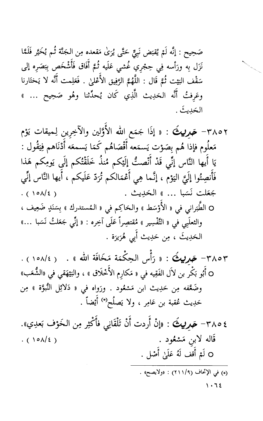 3854 حديث ( إن أردت أن تلقاني فأكثر من الخوف بعدي ) قاله لابن مسعود ( 4 / 158 ) + لم أقف له على أصل +