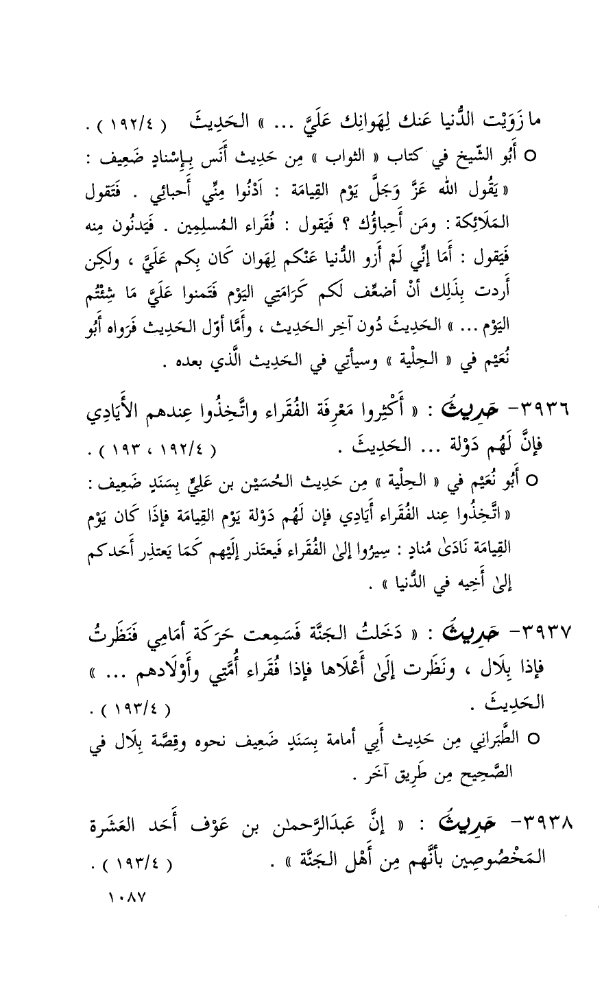 ما زويت الدنيا عنك لهوانك علي . . . ) الحديث ( 4 / 192 ) (1)