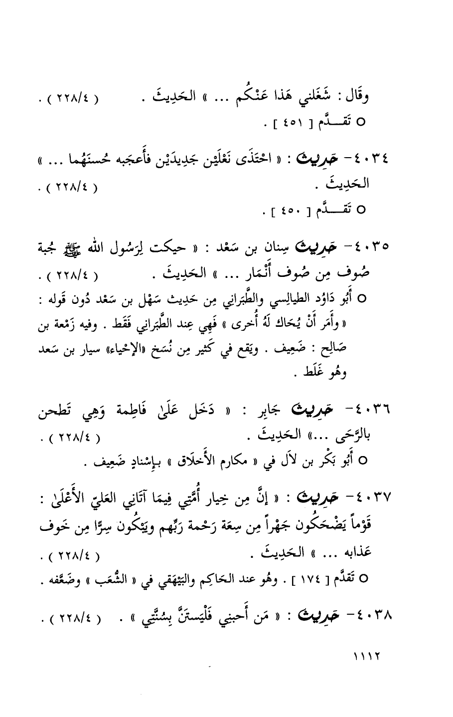 4034 حديث ( احتذى نعلين جديدين فأعجبه حسنهما . . . ) الحديث ( 4 / 228 ) + تقدم 450 +