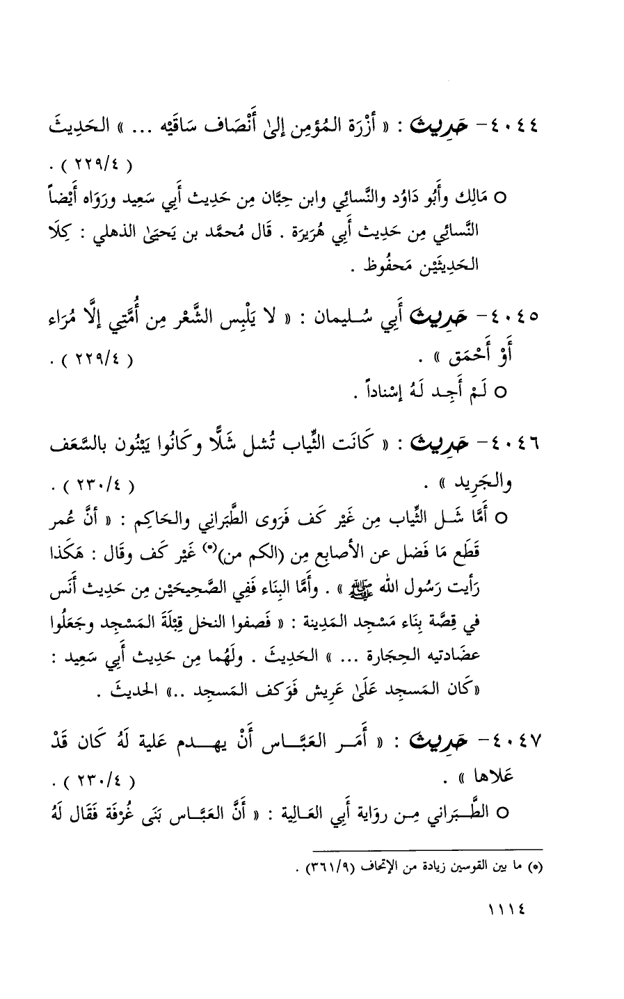 4044 حديث ( أزره المؤمن إلى أنصاف ساقيه 000 ) الحديث ( 4 / 229 ) (1)