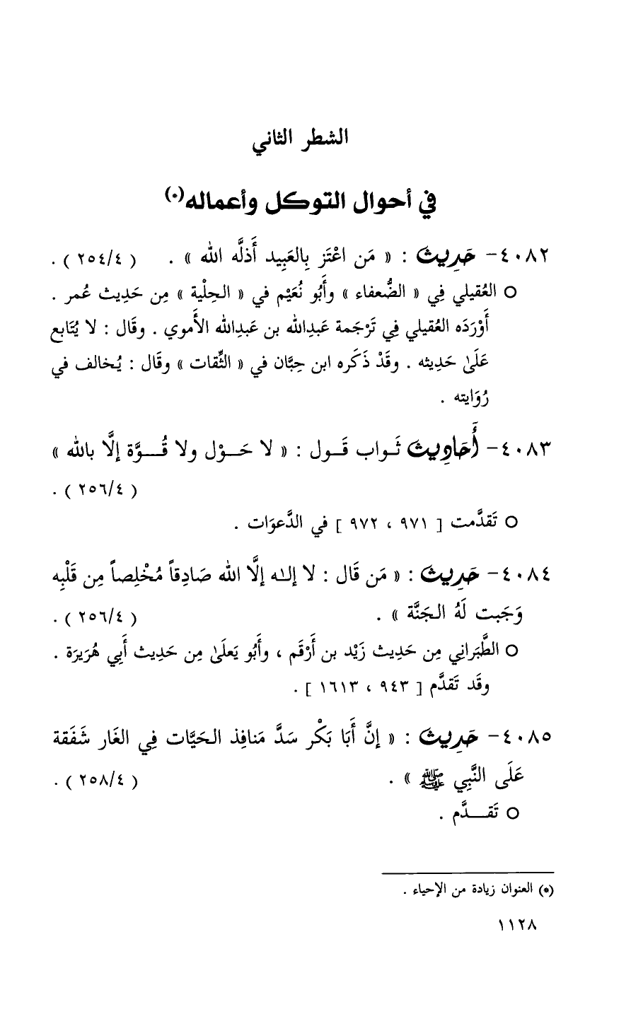 4083 أحاديث ثواب قول ( لا حول ولا قوة إلا بالله ) ( 4 / 256 ) + تقدمت 971ِ 972 في الدعوات +