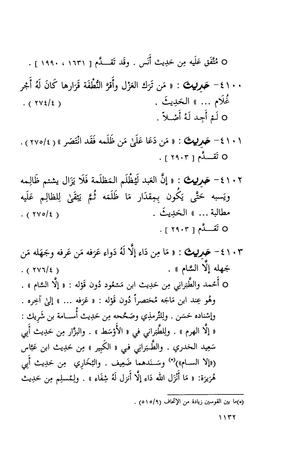 4102 حديث ( إن العبد ليظلم المظلمة فلا يزال يشتم ظالمه ويسبه حتى يكون بمقدار ماظلمه ثم يبقى للظالم عليه مطالبة 000 ) الحديث ( 4 / 275 ) + تقدم 2903 +