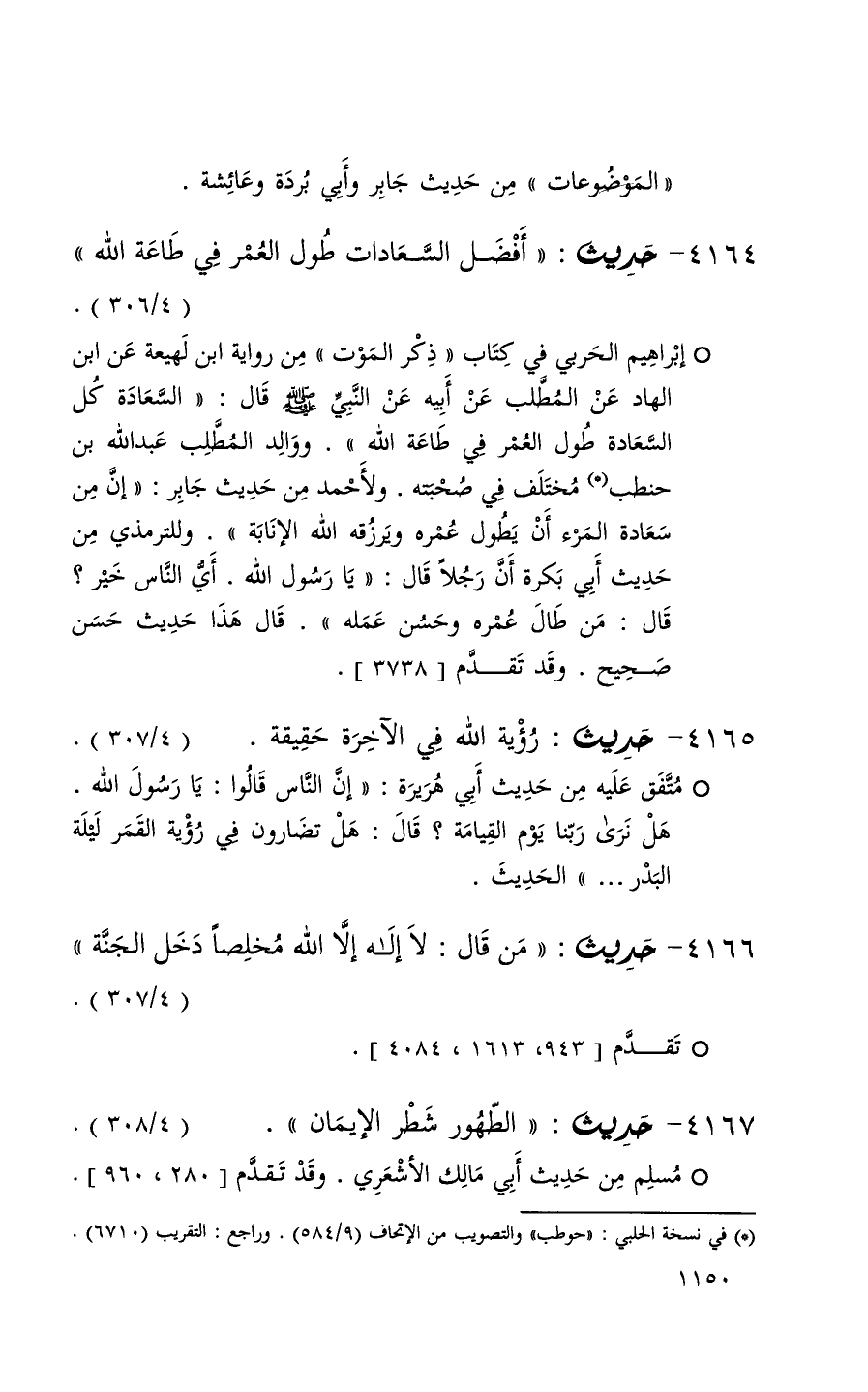 4164 حديث ( أفضل السعادات طول العمر في طاعة الله ) ( 4 / 306 )