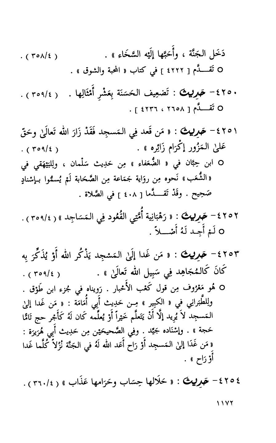 4254 حديث ( حلالها حساب وحرامها عذاب ) ( 4 / 360 )