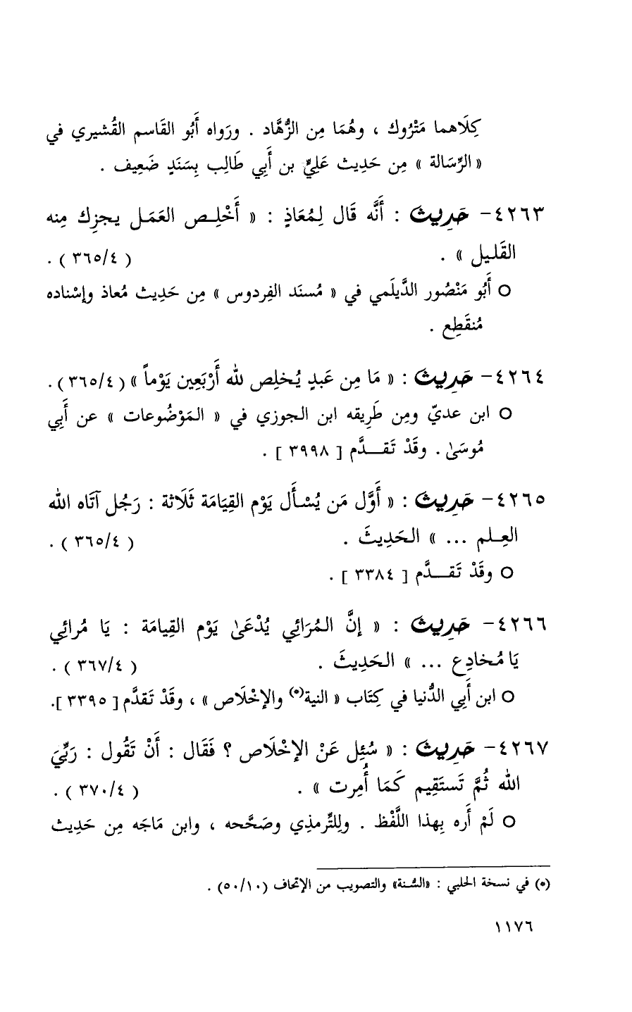 4263 حديث أنه قال لمعاذ ( أخلص العمل يجزك منه القليل ) ( 4 / 365 )