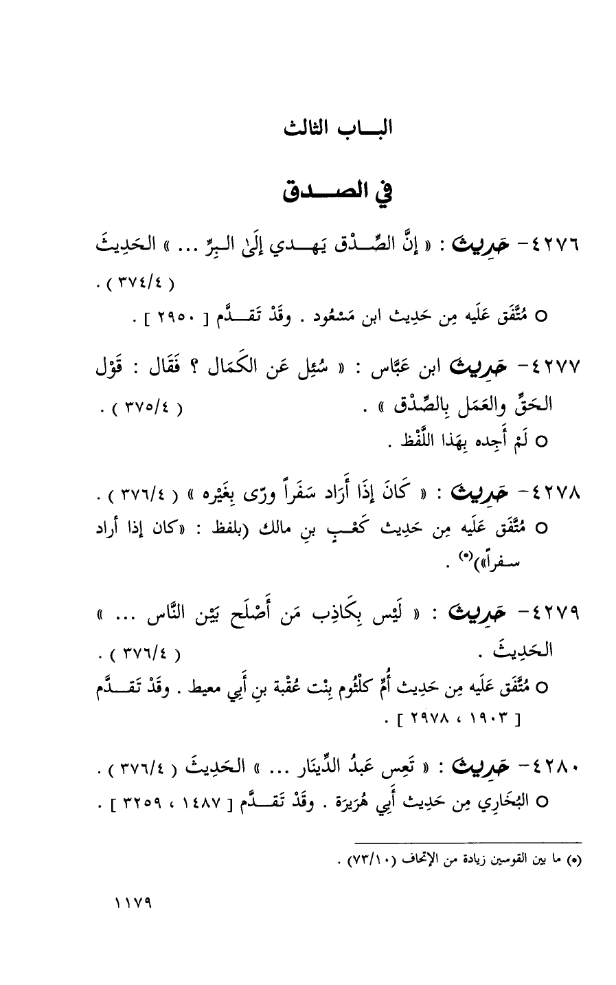 4276 حديث ( إن الصدق يهدي إلى البر 00 ) الحديث ( 4 / 374 ) (1)4277 حديث ابن عباس ( سئل عن الكمال فقال قول الحق والعمل بالصدق ) ( 4 / 375 ) + لم أجده بهذا اللفظ +