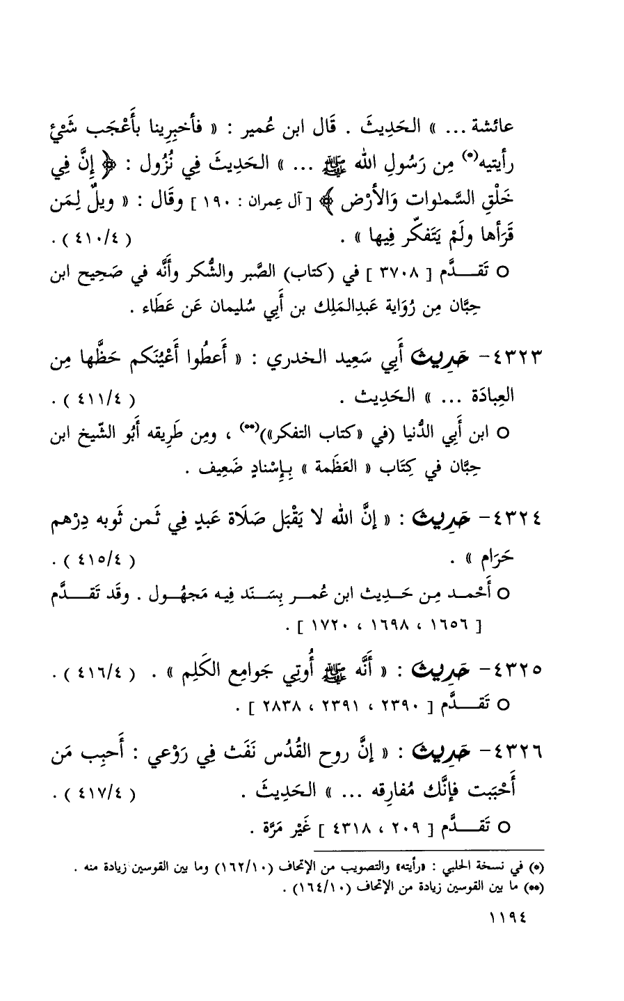 4326 حديث ( إن روح القدس نفث في روعي أحبب من أحببت فإنك مفارقه . . . ) الحديث ( 4 / 417 ) + تقدم 209 ، 4318 غير مرة +