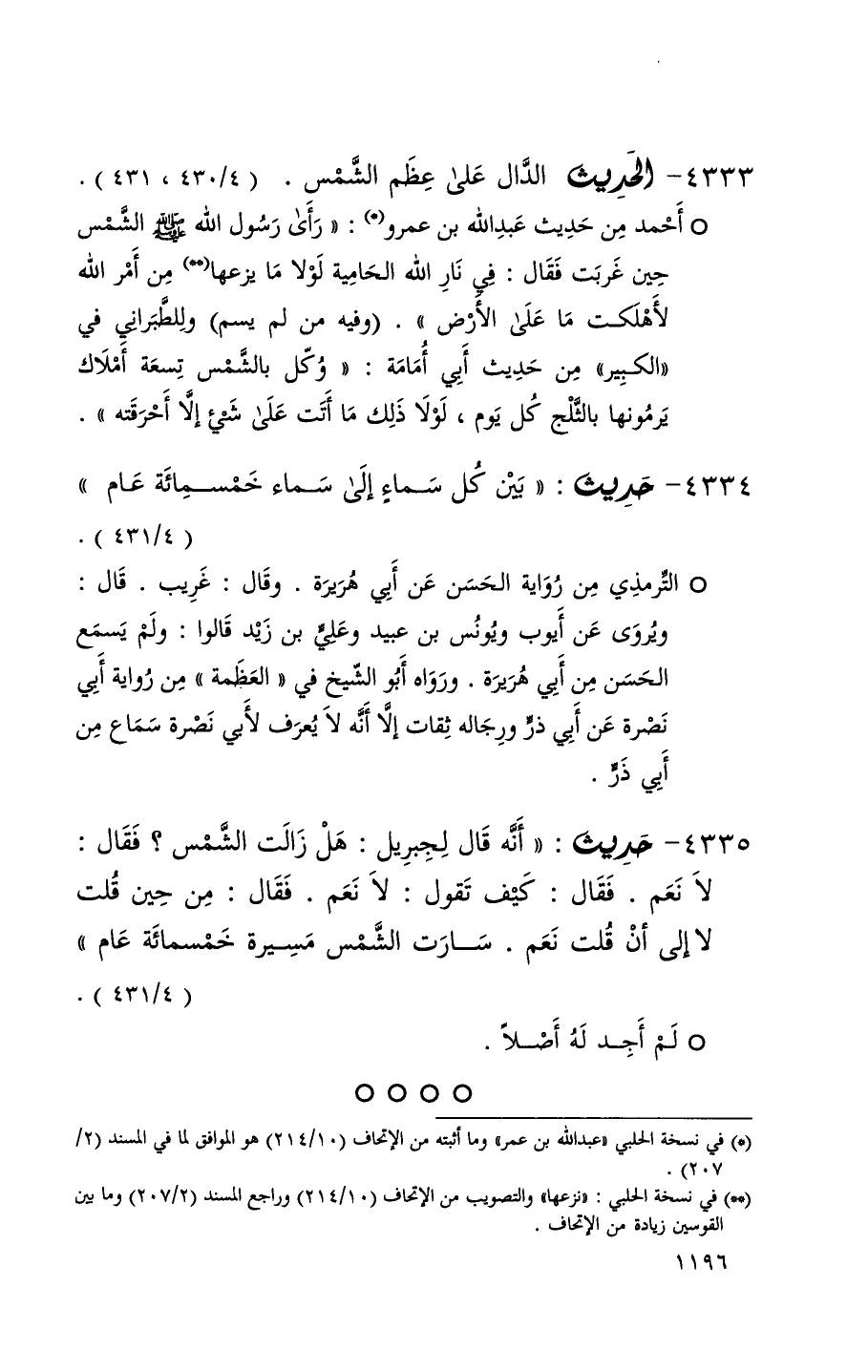 4333 الحديث الدال على عظم الشمس ( 4 / 430ِ 431 ) (1)