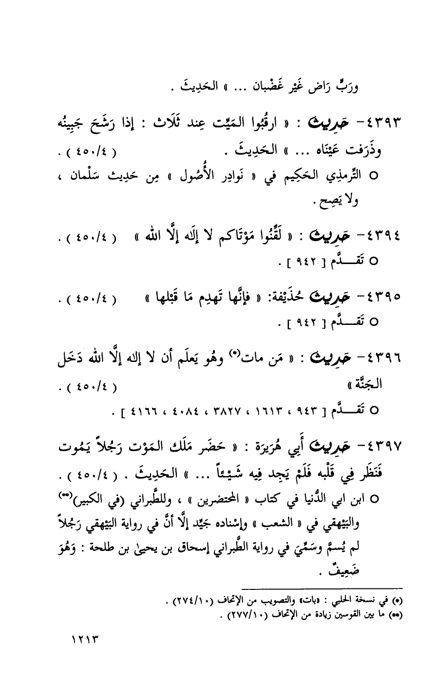 4394 حديث ( لقنوا موتاكم لا إله إلا الله ) ( 4 / 450 ) + تقدم 942 +