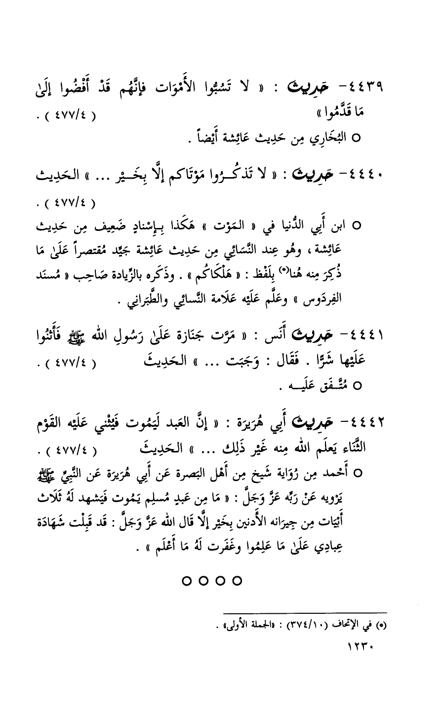 4439 حديث ( لا تسبوا الأموات فإنهم قد أفضوا غلى ما قدموا ) ( 4 / 477 ) (1)