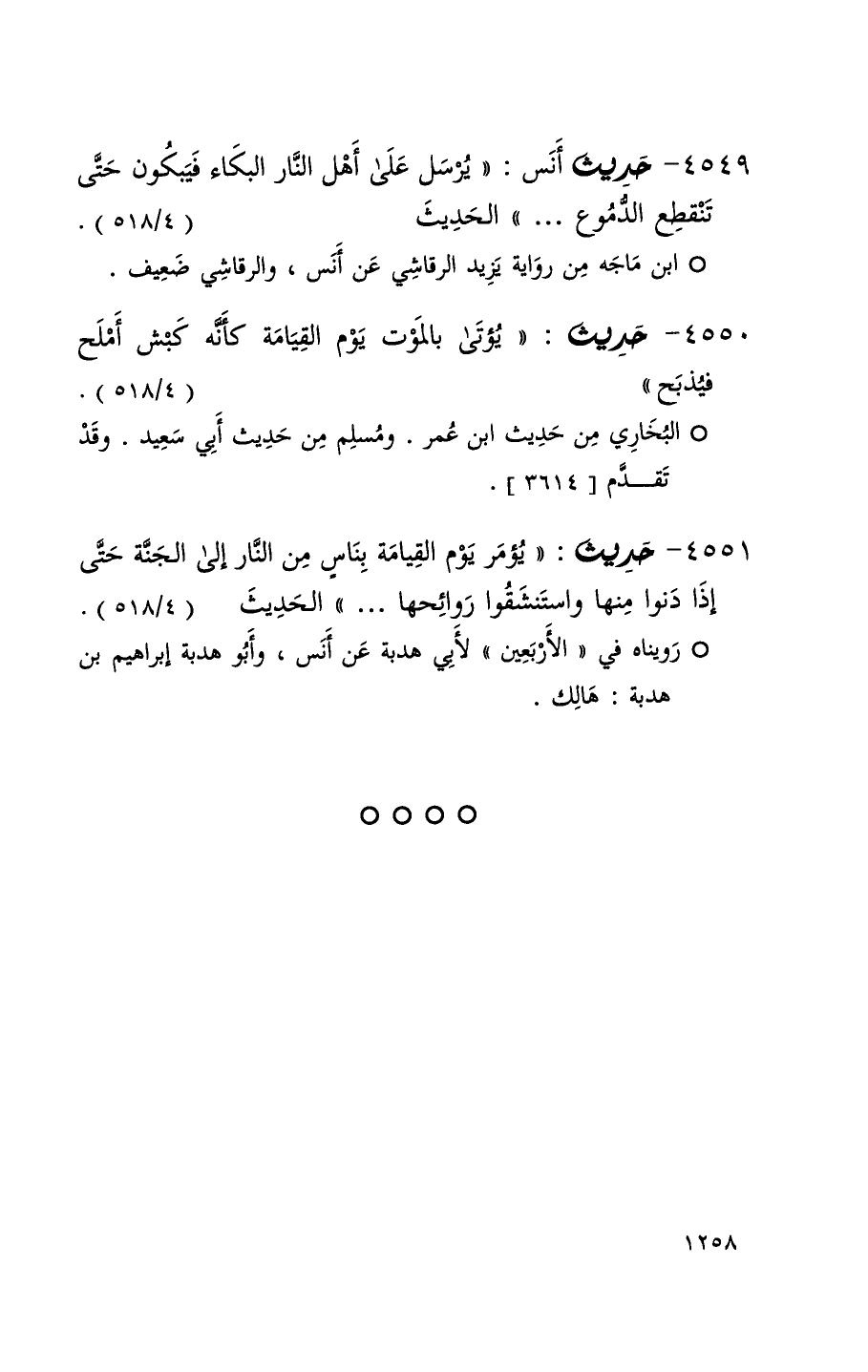 4549 حديث أنس ( يرسل على أهل النار البكاء فيبكون حتى تنقطع الدموع . . . ) الحديث ( 4 / 518 ) (1)
