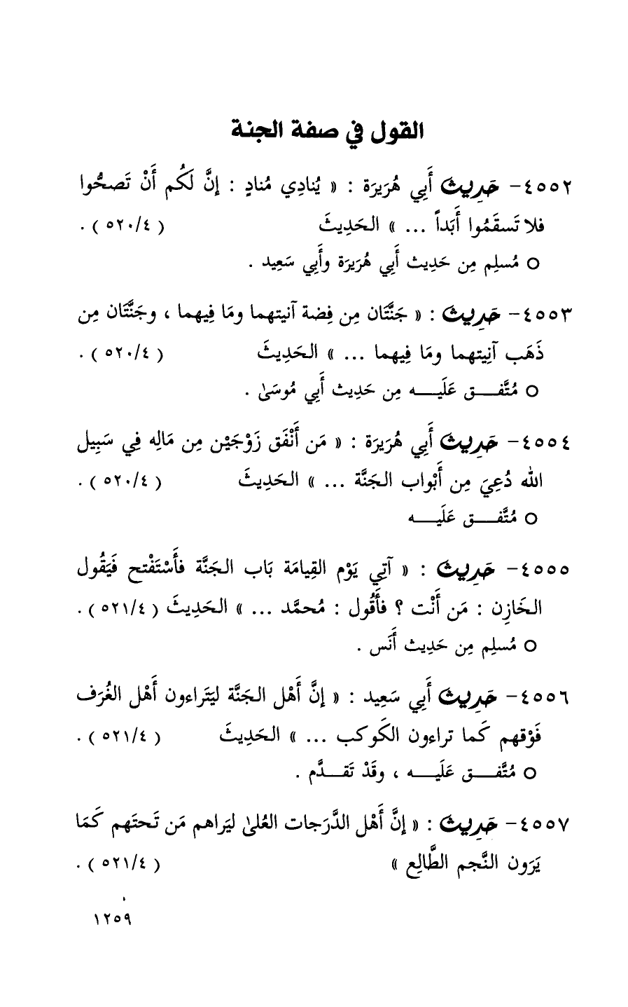 4552 حديث أبي هريرة ( ينادي منادٍ إن لكم أن تصحوا فلا تسقموا أبداً . . . ) الحديث ( 4 / 520 ) (1)