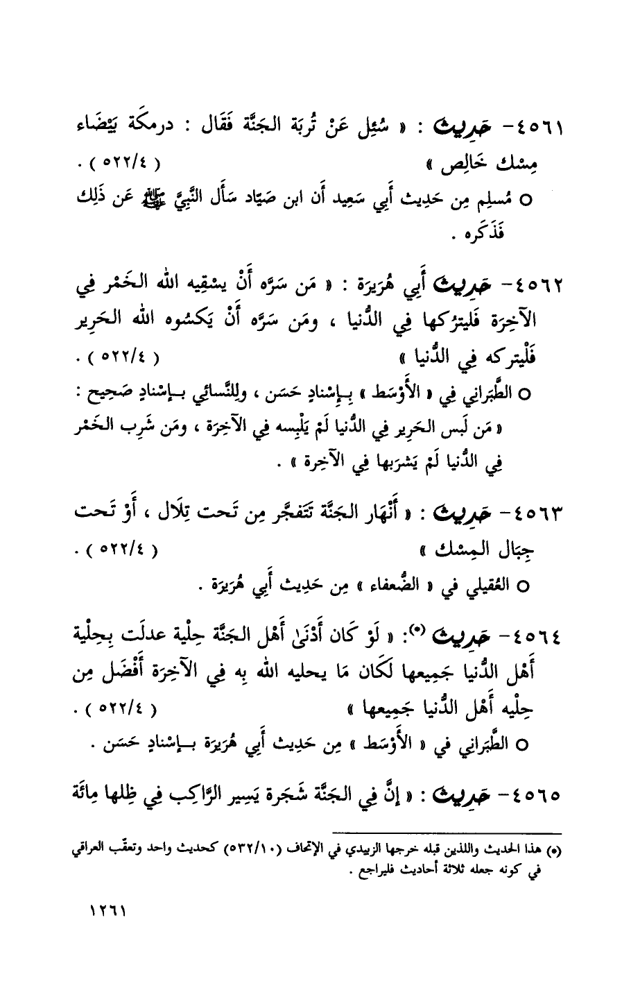 4561 حديث ( سئل عن تربة الجنة فقال درمكة بيضاء مسك خالص ) ( 4 / 522 ) (1)