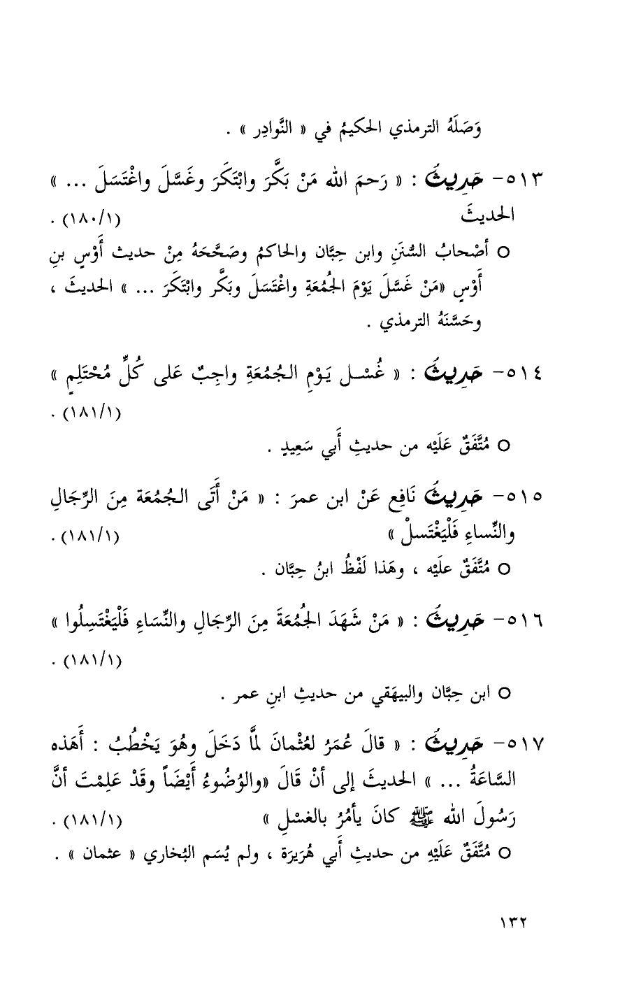 513 حديث ( رحم الله من بكر وابتكر وغسل واغتسل 000 ) الحديث ( 1 / 180 )