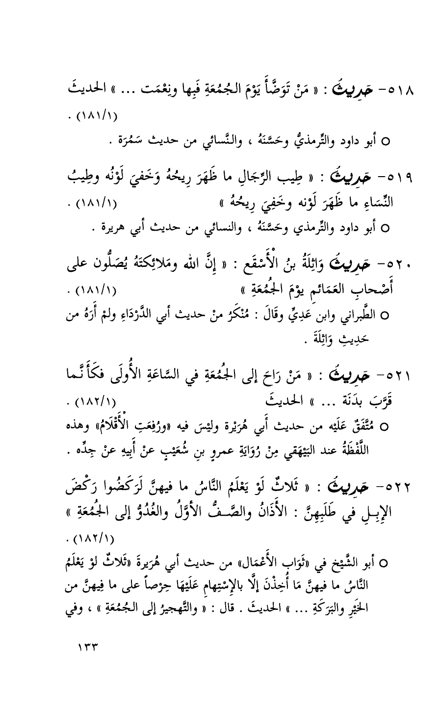 518 حديث ( من توضأ يوم الجمعة فبها ونعمت 000 ) الحديث ( 1 / 181 ) (1)