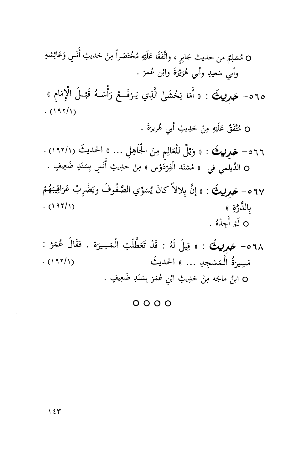 567 حديث ( إن بلالاً كان يسوي الصفوف ويضرب عراقيبهم بالدرة ) ( 1 / 192 ) + لم أجده +