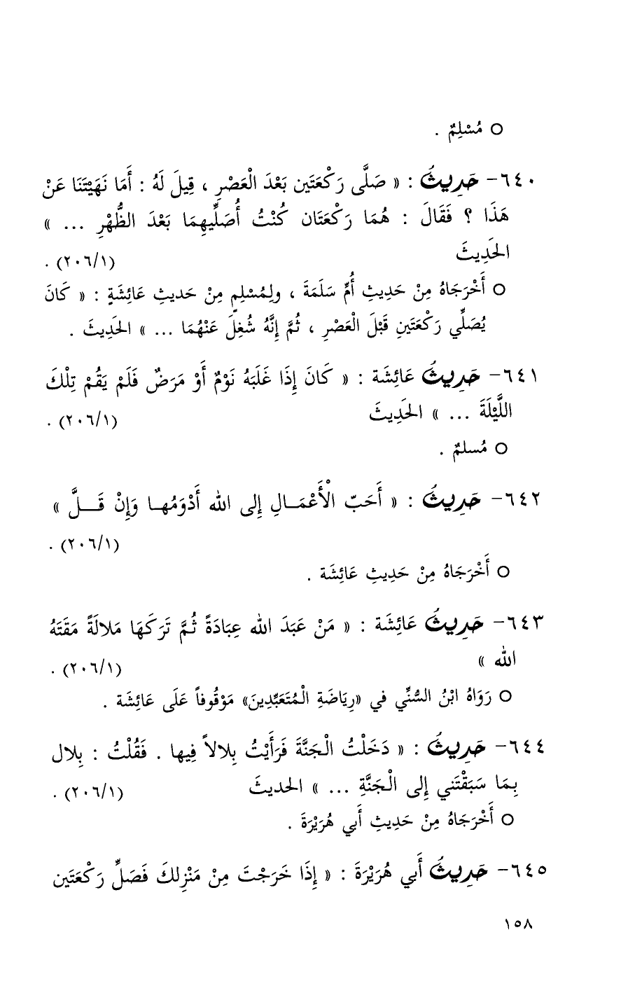 640 حديث ( صلى ركعتين بعد العصر قيل له أما نهيتنا عن هذا فقال هما ركعتان كنت أصليهما بعد الظهر 000 ) الحديث ( 1 / 206 ) + أخرجاه من حديث أم سلمة ولمسلم من حديث عائشة ( كان يصلي ركعتين قبل العصر ثم إنه شغل عنهما 000 ) الحديث +