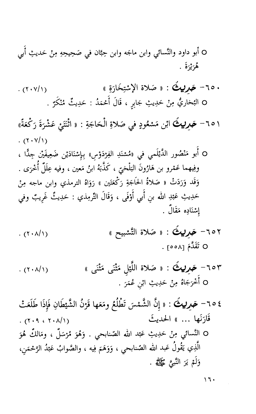 654 حديث ( إن الشمس تطلع ومعها قرن الشيطان فإذا طلعت قارنها . . . ) الحديث ( 1 / 208ِ 209 ) + النسائي من حديث عبد الله الصنابحي وهو مرسل ومالك هو الذي يقول عبد الله الصنابحي ووهم فيه والصواب عبد الرحمن ولم ير النبي +